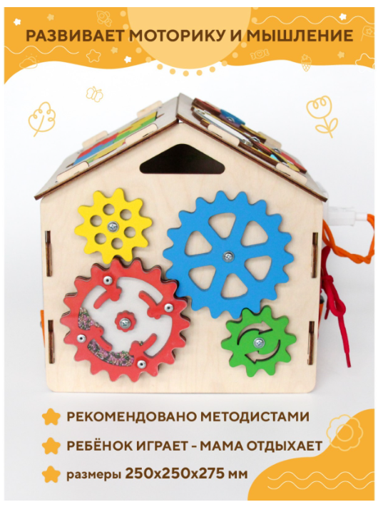 - Формирует полезные навыки: играя с бизидомом, ребенок учится различать цвета, формы, ориентироваться в пространстве, развивает логическое мышление и причинно-следственные связи.