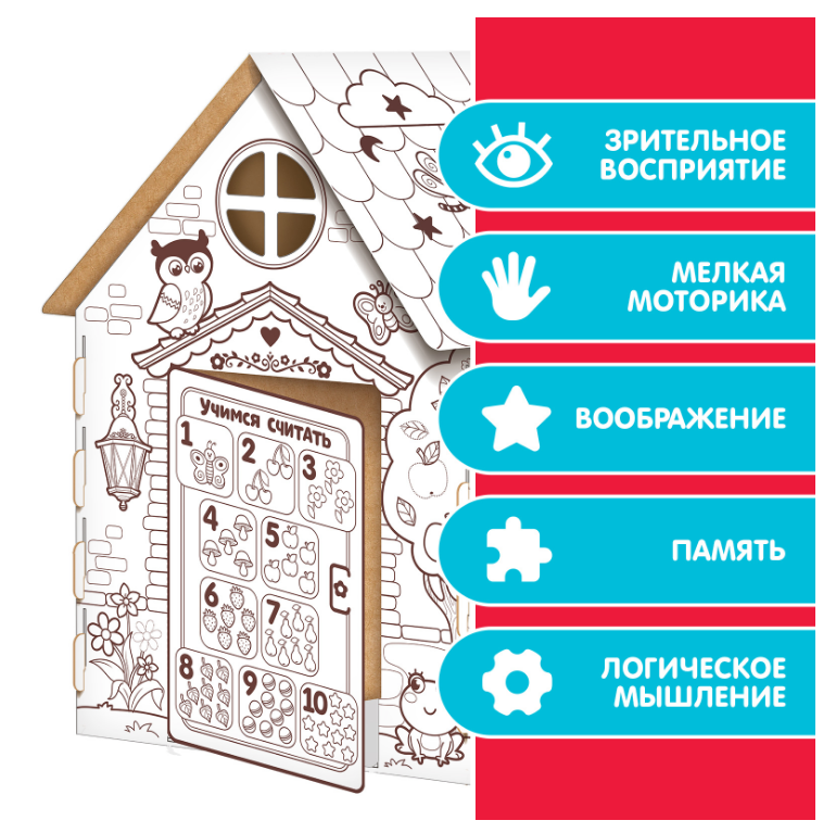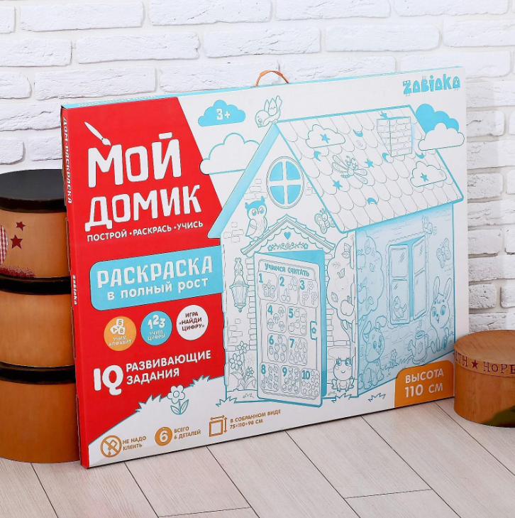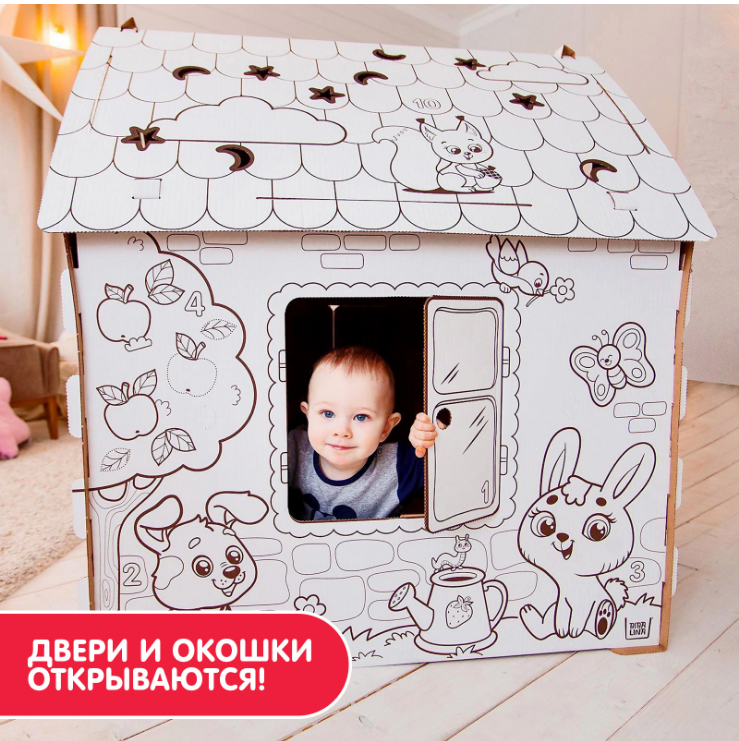 Домик из картона станет для ребёнка любимым местом для игр. Внутри малыш устроит себе уютный уголок, а снаружи раскрасит стены по собственному дизайну.
