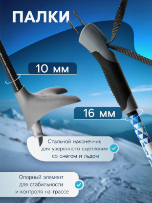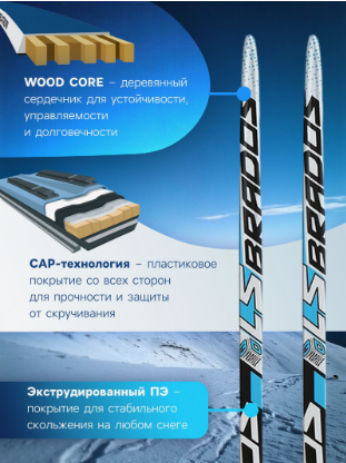 Материал лыжных палок — стеклопластик — гарантирует спортсмену надёжность и прочность всей конструкции, увеличивая срок эксплуатации. Большим плюсом в данной модели является простота подготовки, предварительная обработка не требуется, достаточно встать и поехать.