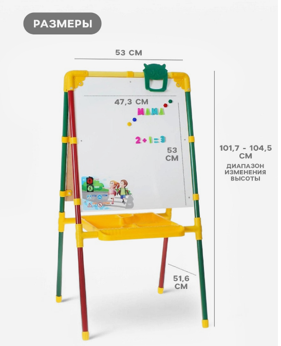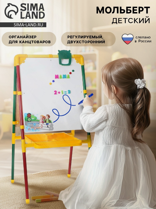 С таким красочным детским мольбертом легко создать творческую обстановку даже в домашних условиях, а также превратить обучение грамоте в увлекательную игру.