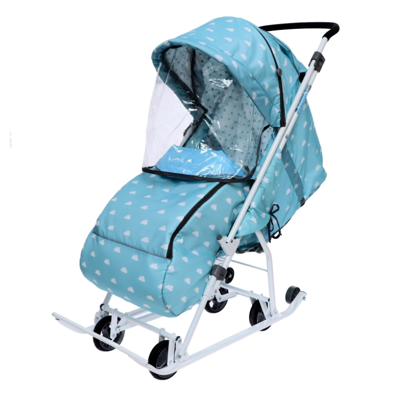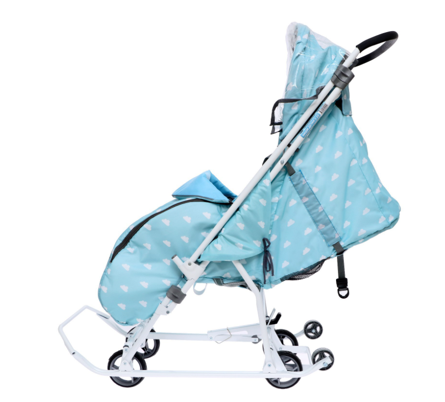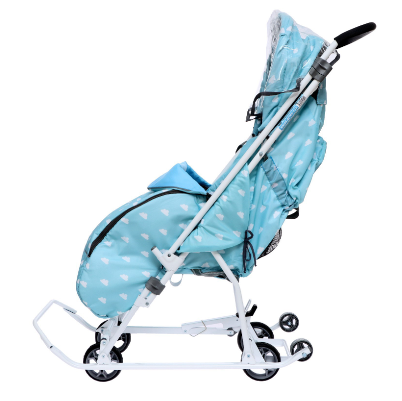 Санки-коляска «Наши детки 3-1К», принт с облачками, цвет голубой