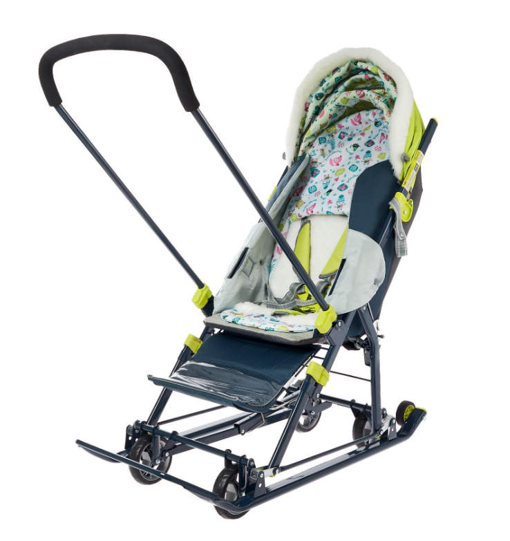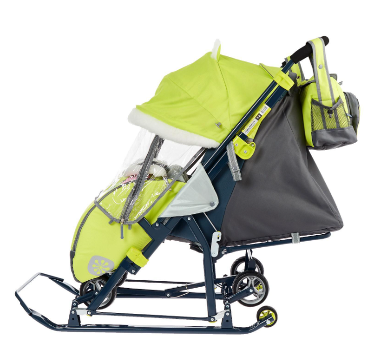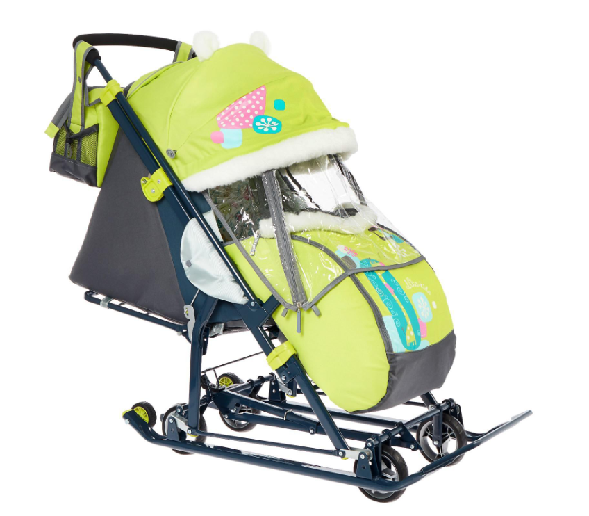Санки коляска «Ника Детям НД 7-6», рисунок с жирафом, цвет лимонный, механизм качания