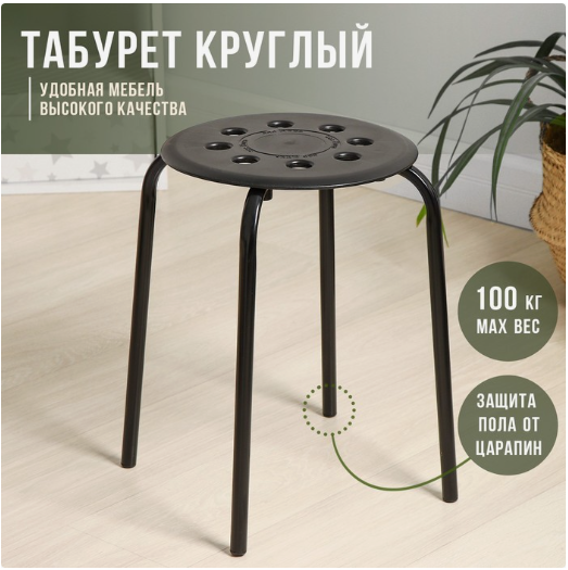 - Широкое сиденье позволит с комфортом сидеть на табурете длительное время;
