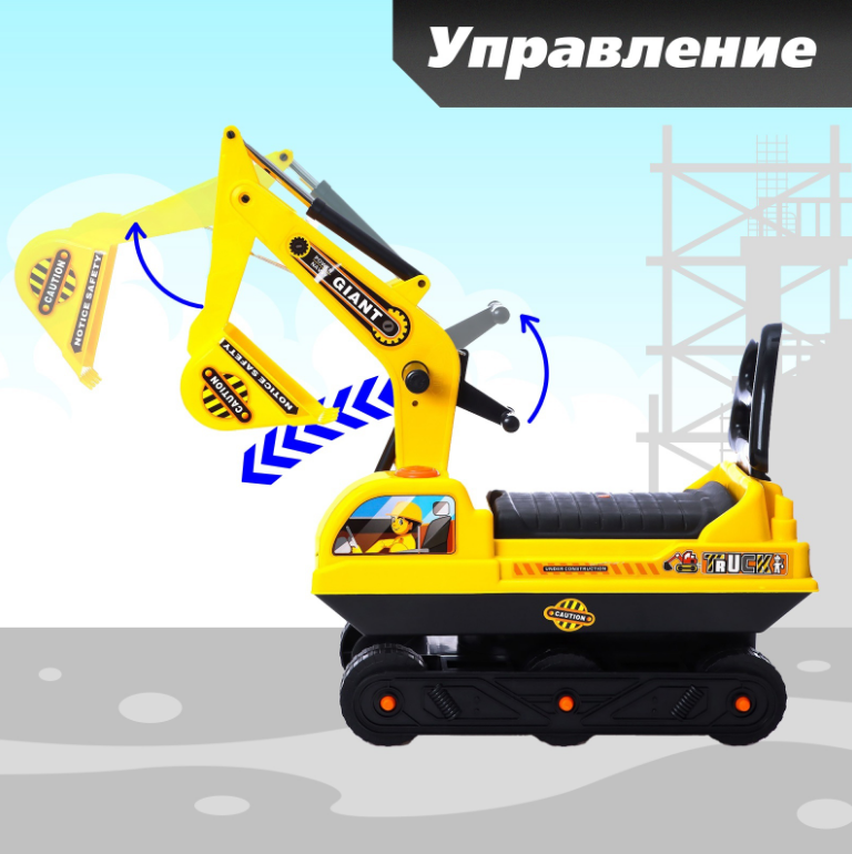 Управляя толокаром «Экскаватор» малыш почувствует себя настоящим строителем!Ребёнок будет управлять ковшом с помощью специального рычага и поднимать им игрушки. Толокар подвижный, на нём можно кататься.